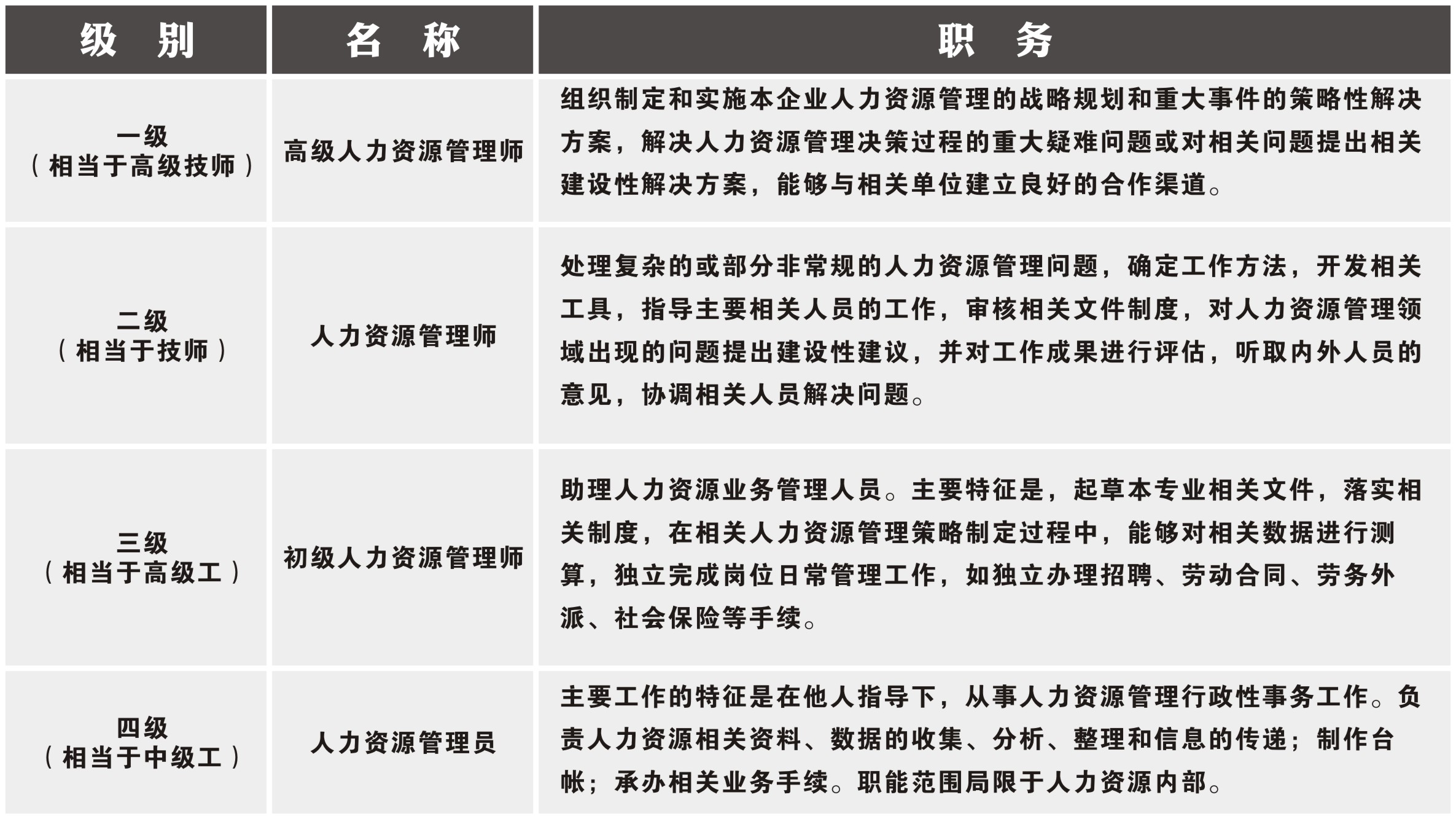 企业人力资源管理师资格认证考试属中华人民共和国人力资源和社会保障部举办的,全国统一考试,政府认证的资格考试,是目前从事人力资源管理工作的国家标准。由于证书颁发方(国家人力资源和社会保障部)的权威和课程体系的有效,该证书获得了中国企业的普遍尊重,已逐步成为人力资源工作者的从业资格证书。