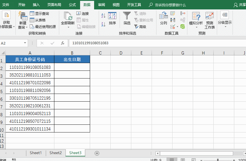 快速提取员工生日