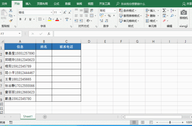 录入数据的时候最烦就是文本和数值连在一起的,就像图中的姓名与手机号,这么多数据,有什么好办法一次性分开呢?